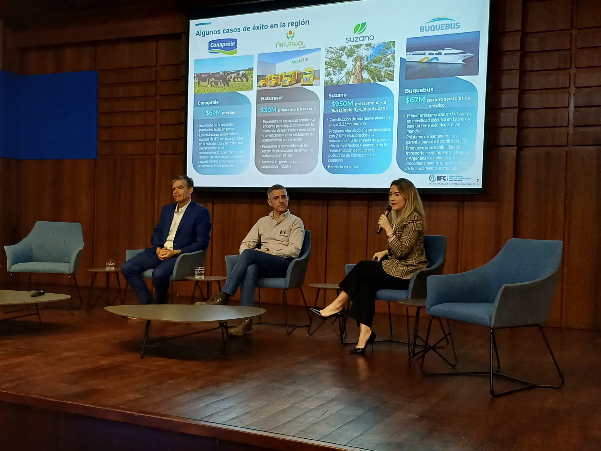 Durante el evento la oficial de Inversiones IFC, del Banco Mundial, Sofía Stefanelli, instó a continuar sumando esfuerzos desde todos los sectores para posicionar a Uruguay como país exportador sostenible y compartió casos de éxito logrados en la región con apoyo del Banco.