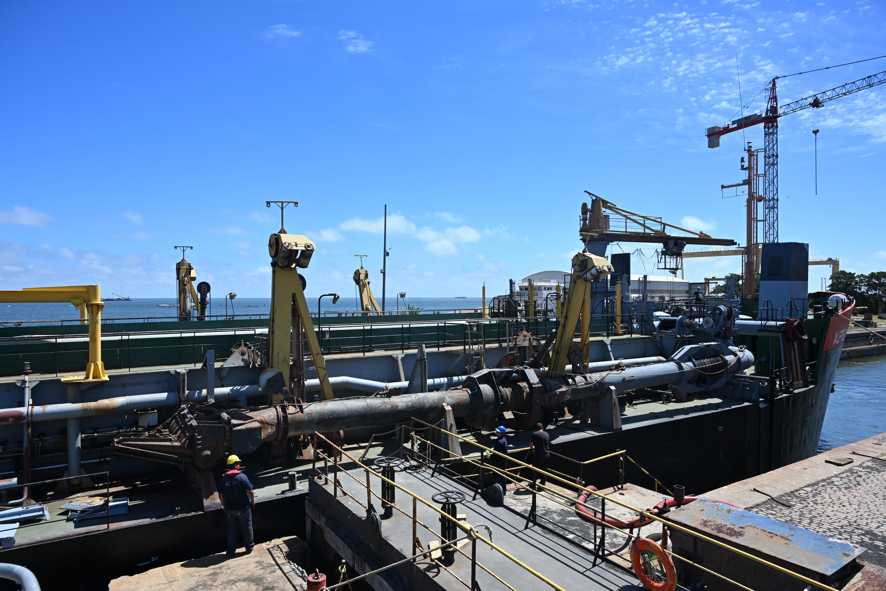 Estuvieron presentes supervisando la culminación de esta etapa en dique el gerente del Área Dragado, Ing. Nav. Manuel Ferrer y el subgerente del Área, Fabián Peña.