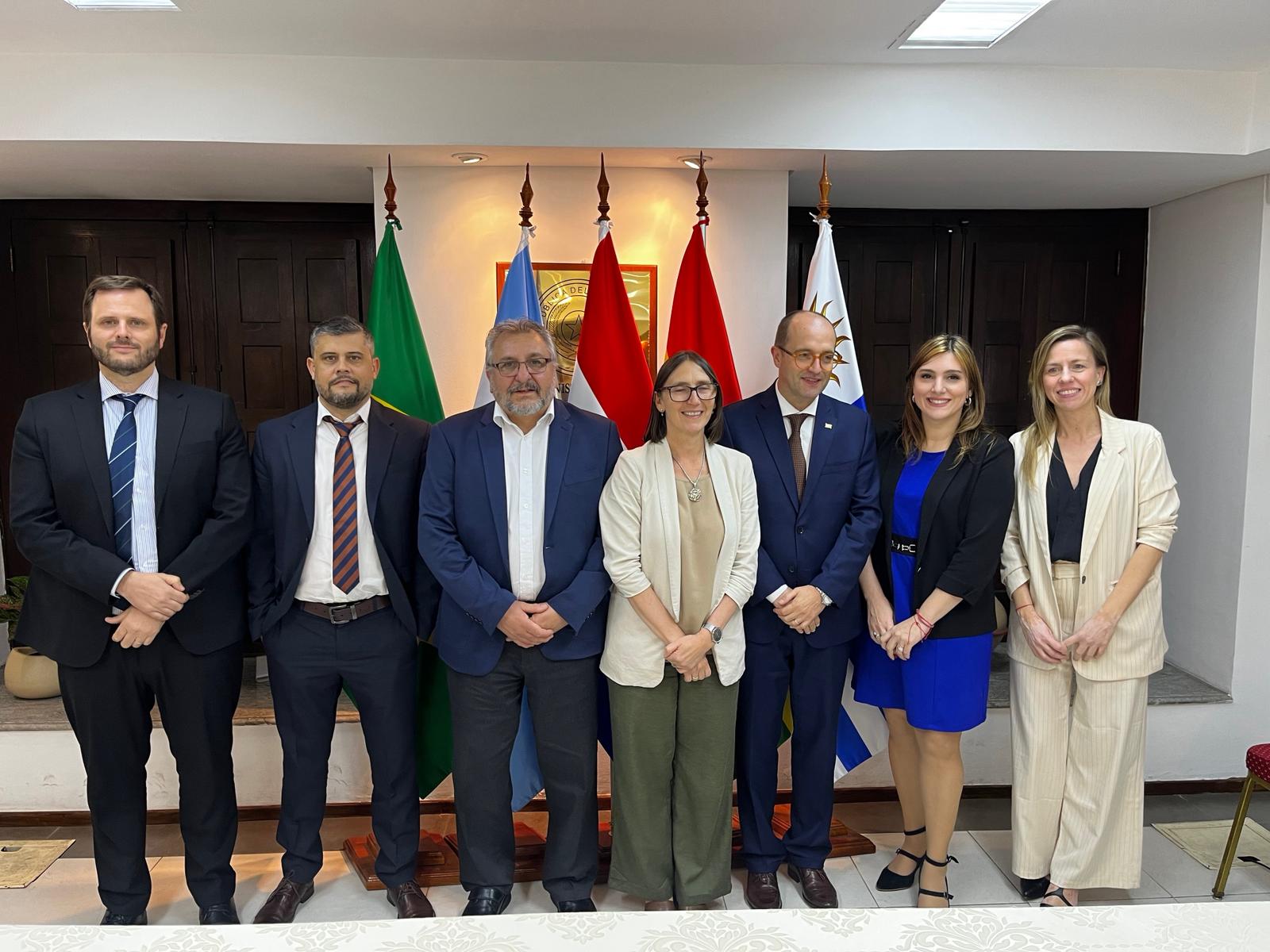 La delegación de Uruguay estuvo presidida por la Subsecretaria del Ministerio de Transporte y Obras Públicas, Arq. Claudia Peris, acompañada del Ing. Pablo Genta, presidente de ANP y el Dr. Marcelo Benvenutto, subgerente del Área Secretaría General de la ANP; por delegados del Ministerio de Relaciones Exteriores, directora de Asuntos Limítrofes, Marítimos y Comisiones Mixtas, Silvana de la Gatta y ministra Soledad Veiga, y por la Embajada de Uruguay en Paraguay, el embajador, Marcelo Blanco y el consejero Martín Lorieto.