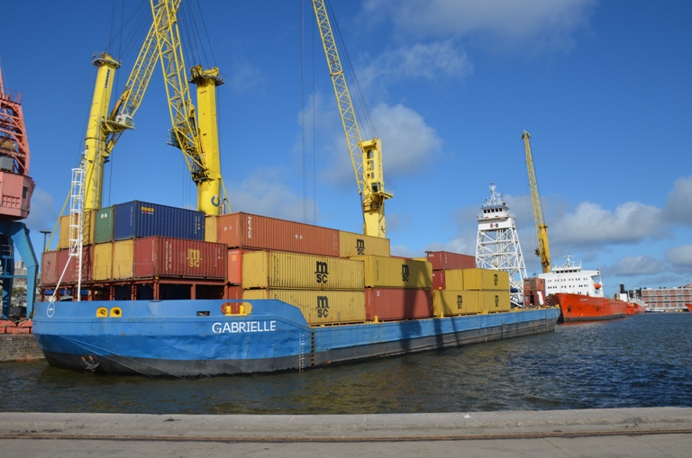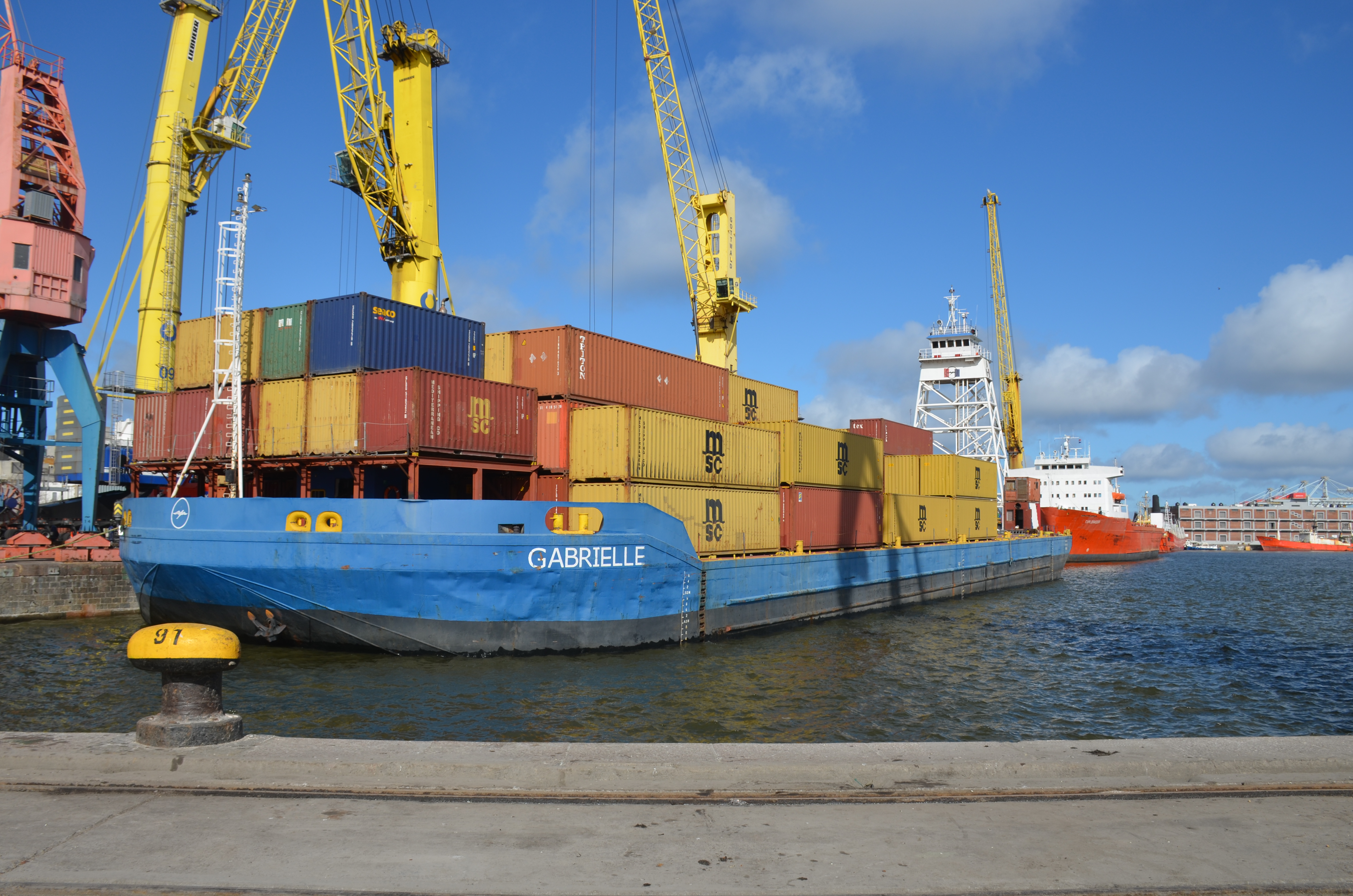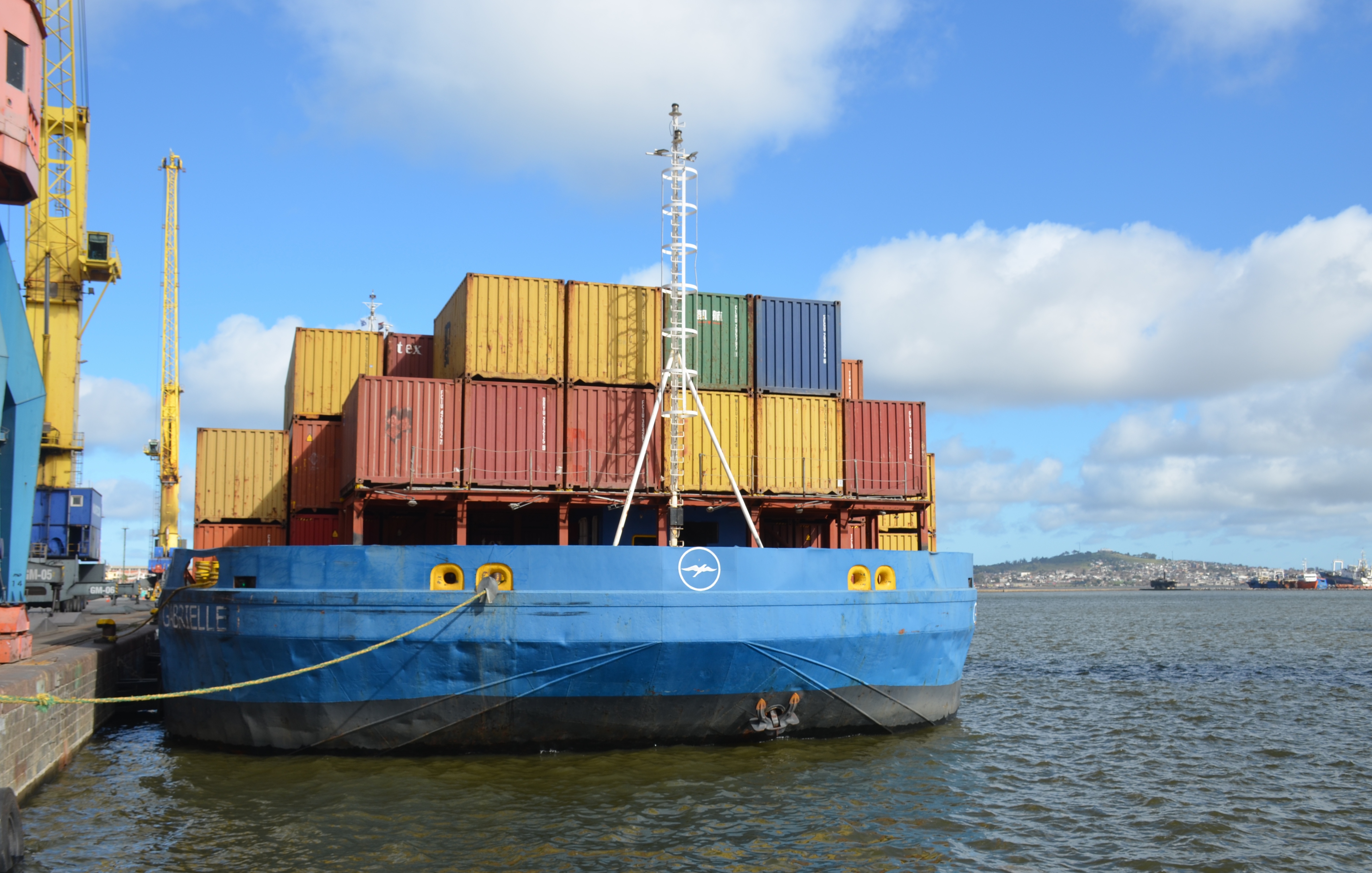 Buque de cabotaje Gabrielle opera en el puerto de Montevideo.