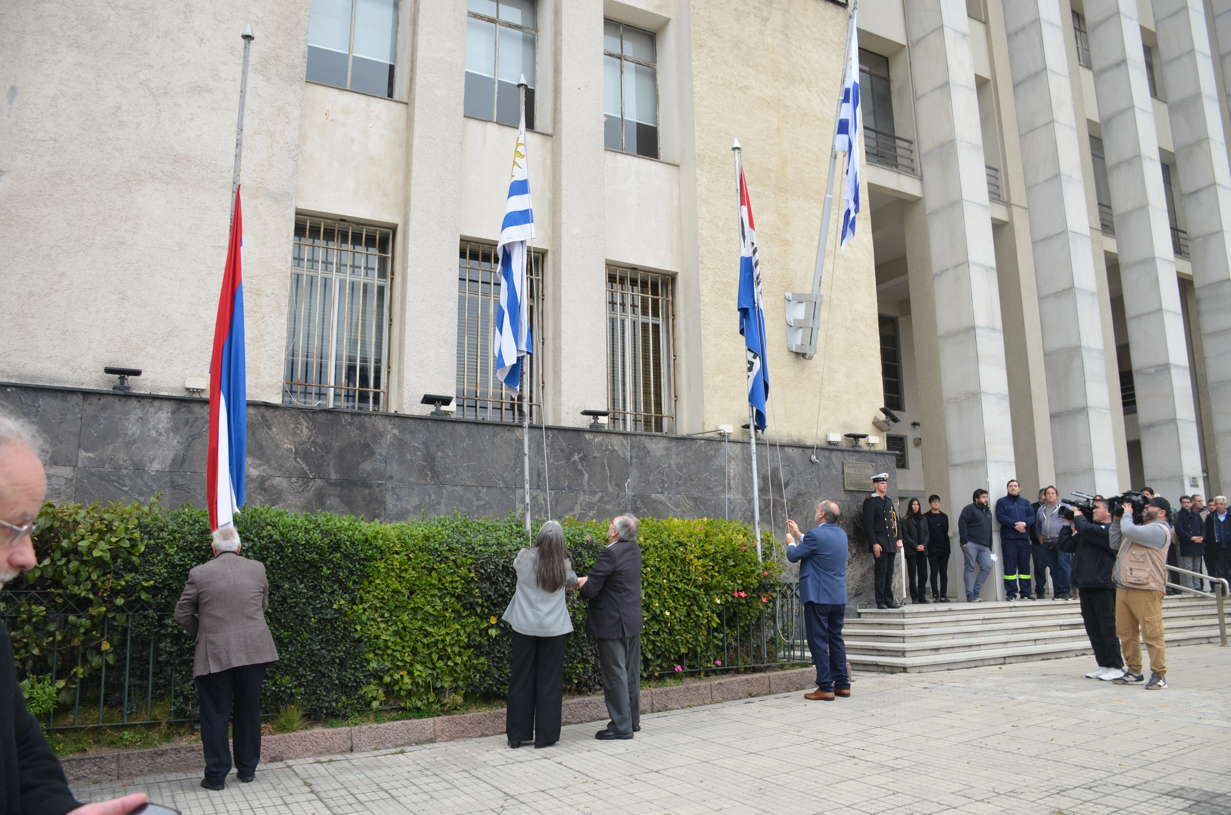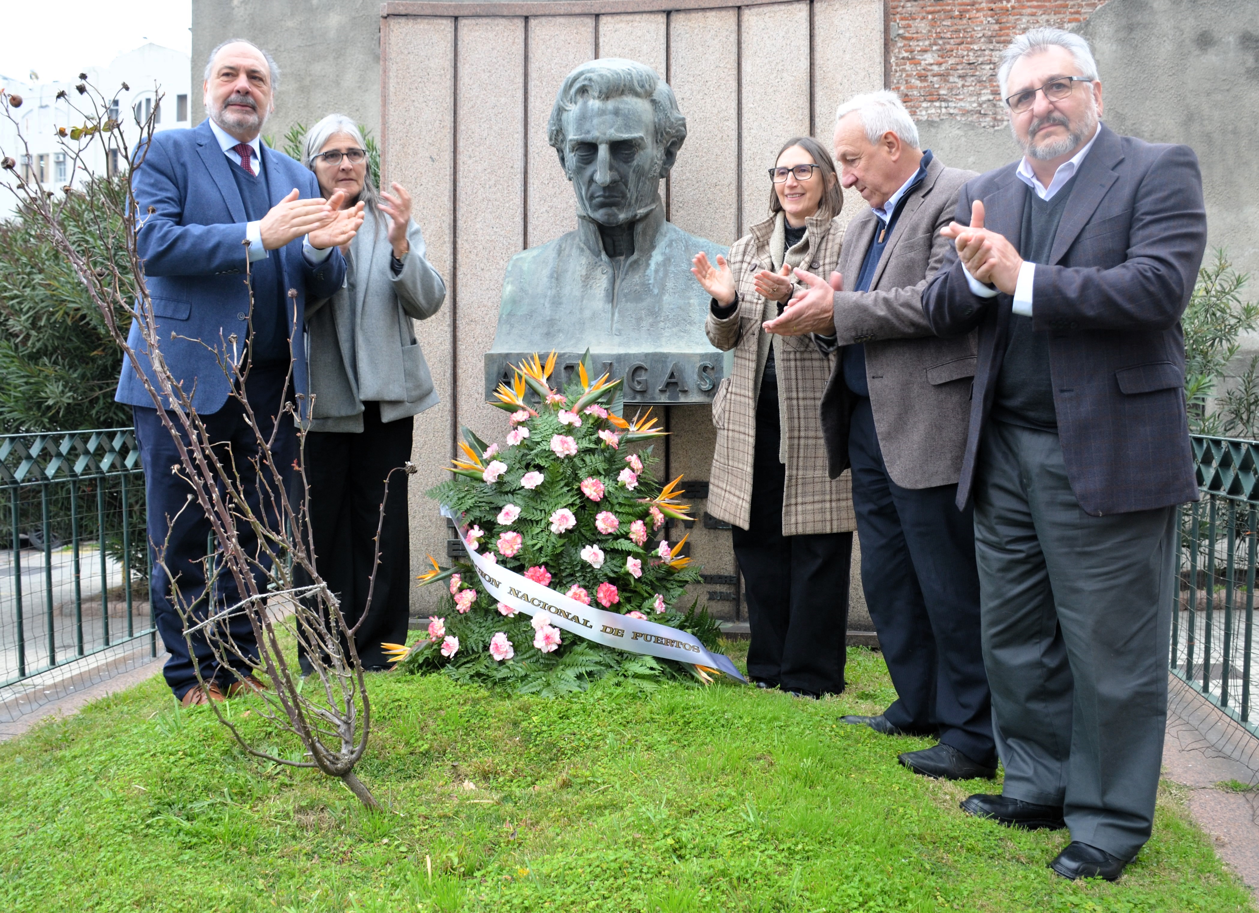 Frente al edificio sede se llevó a cabo una ofrenda floral al prócer José Gervasio Artigas y el izado de banderas, en una ceremonia encabezada por el Directorio de la ANP junto a la ministra de Transporte y Obras Públicas, Lucía Etcheverry.