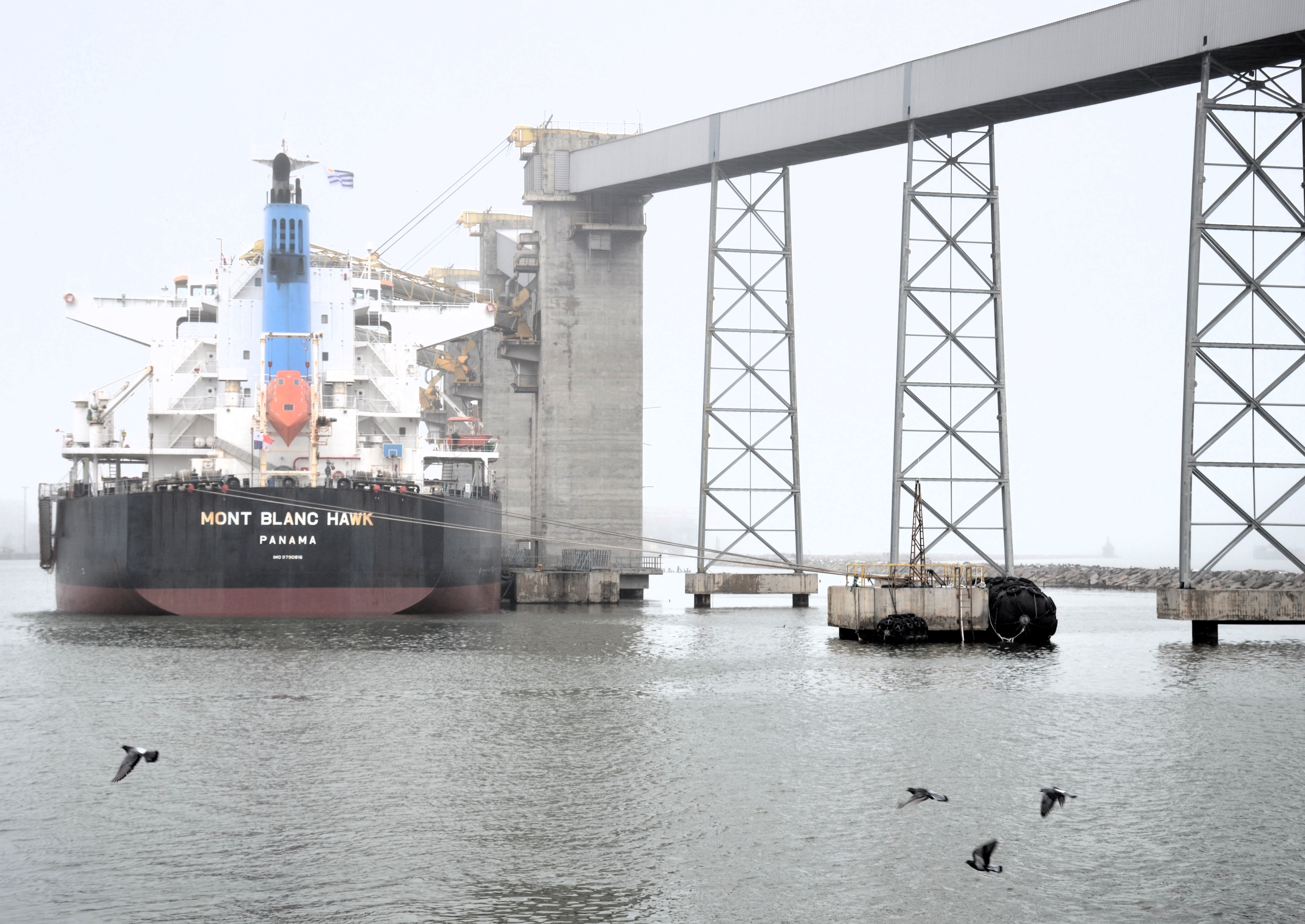 La TGM realiza la operativa de completamiento de carga del buque Mont Blanc Hawk que realizó primero una carga de 36.000 toneladas en el puerto de Nueva Palmira por parte de Terminales Graneleras Uruguayas (TGU).