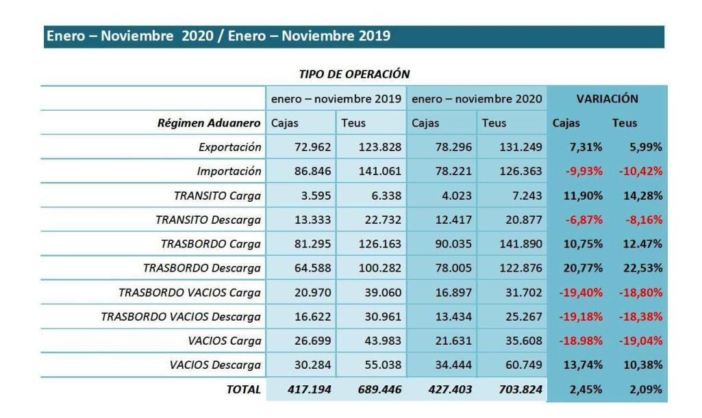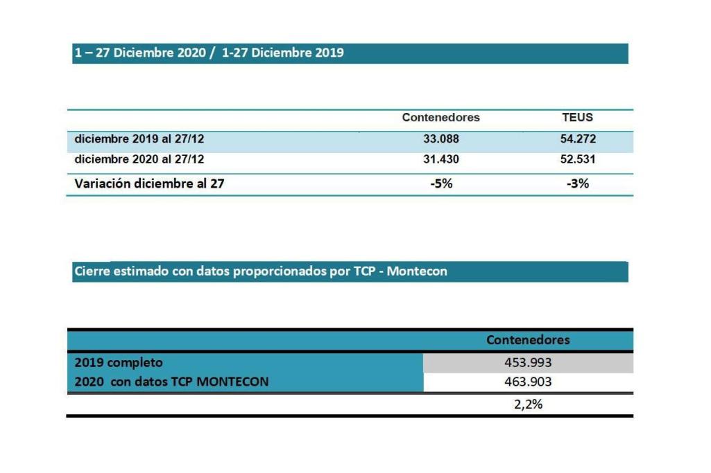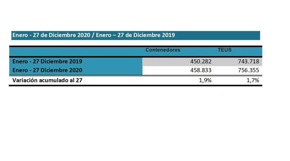 Con un crecimiento levemente superior al 2% se cierra el movimiento de contenedores 2020.