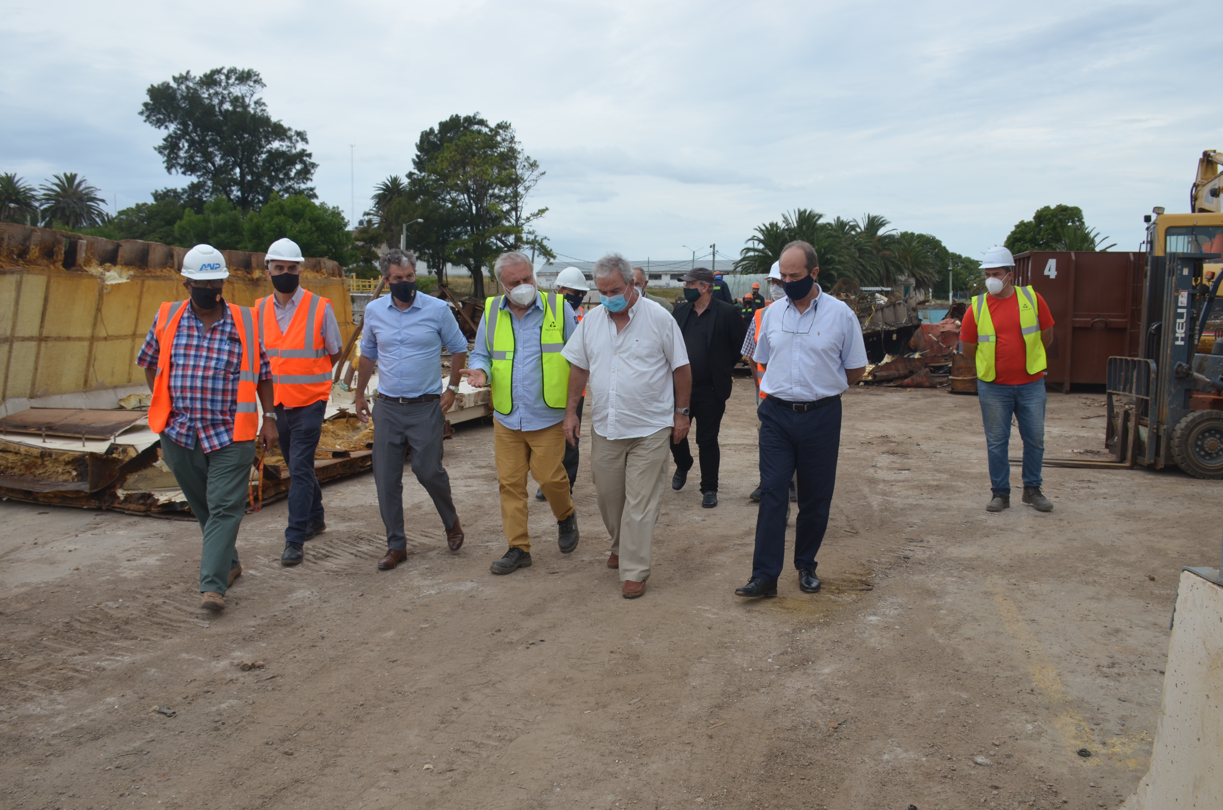 El presidente de ANP, Juan Curbelo, junto con el ministro de Transporte y Obras Públicas, Luis Alberto Heber, recorrieron las instalaciones del puerto Punta Sayago. La finalidad es ver como se está trabajando en el desguace de barcos a cargo de la empresa Movilex.
