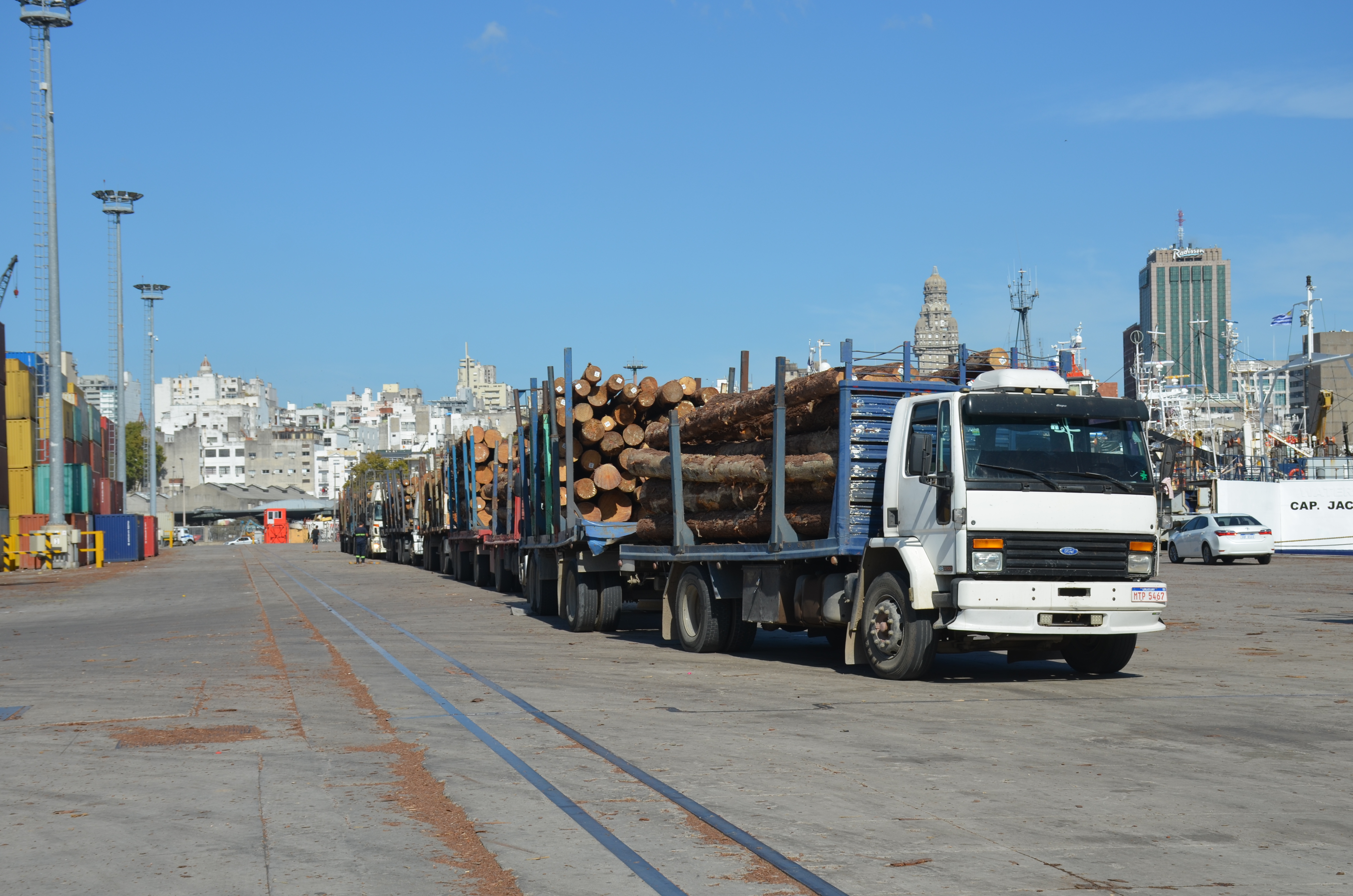 La operación insumirá unos diez días y un continuo movimiento en muros del puerto montevideano de cientos de camiones cargados de troncos y maderas.